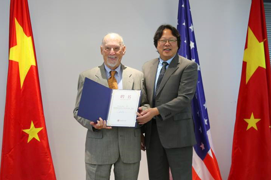 王力克为亨特.陶德颁发f28365荣誉教授证书。