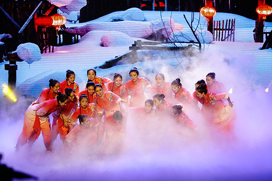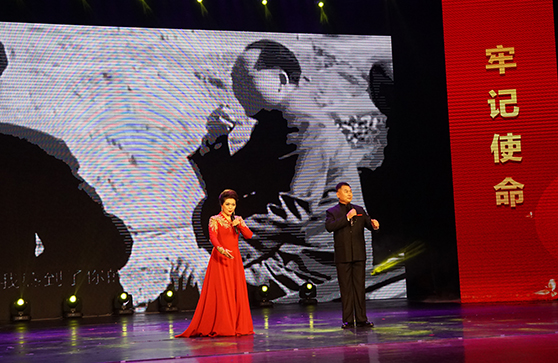 随后,大家共同观看了精彩的文艺演出。女子群舞《喜饽饽》用肢体语言把胶东地区人民热爱生活、幸福祥和的场面呈现在观众面前。随后,诗歌朗诵、合唱、京剧、音乐剧、弦乐合奏、二重唱、独唱、萨克斯合奏、舞蹈等节目精彩纷呈,博得观众一阵阵喝彩。青年合唱团带来了《come to the music》和《雪域向往》,用丰富多彩的调性转换和动力充沛的节奏编配演绎了现代音乐教科书式的精彩。荣获第十九届齐越朗诵艺术节优秀作品奖的散文诗朗诵《野草题辞》,激起了观众的时代激情。音乐剧《名扬四海》带领观众穿越回了青春洋溢的学生时代,回到了开学的那一天。青年弦乐团在全国第五届大学生艺术展演活动中荣获艺术表演类一等奖的好成绩,现场演奏的《霍尔堡组曲》让观众领略了山艺学子的精彩。男女二重唱《邀你一起去看桃花》,让观众为学生扎实的基本功喝彩。传统武戏《三岔口》片段在没有道白和唱腔的情况下,靠演员惟妙惟肖的表演,把剧情演释得淋漓尽致。王文清、张倩演唱的京歌《中国脊梁》让观众流连忘返。国家艺术基金资助项目《再唱沂蒙山》,用歌声颂扬沂蒙精神、红色基因,传递山东大地的文化讯息和齐鲁儿女的勤劳勇敢。青年萨克斯乐团带来的《民族节庆》和《婚礼舞曲》,用萨克斯细腻委婉、浑厚圆润的音色给晚会增添了浓重的节日气氛。晚会在曾荣获第九届中国舞蹈荷花奖校园舞蹈评奖作品“金奖”的男子群舞《脊梁》落下帷幕。