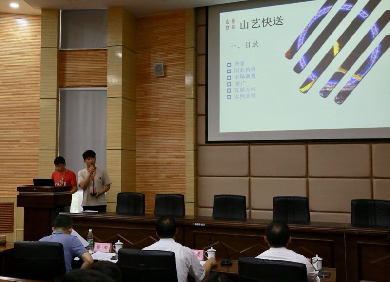 比赛活动中,每个项目通过ppt演示、短片展示、现场答辩等环节旁征博引,灵活使用产品样品、文字图片等进行辅助说明。详尽的计划、专业的术语在简明扼要的阐述下变得浅显易懂,严谨的逻辑分析赢得场下观众的阵阵掌声。